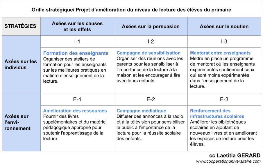 - EXEMPLE. Voici l’exemple d’une grille stratégique d’un projet fictif.